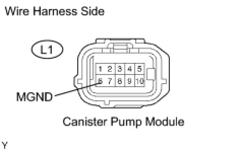 (c) Apply battery voltage to the 9 and 8 terminals of the canister pump module.