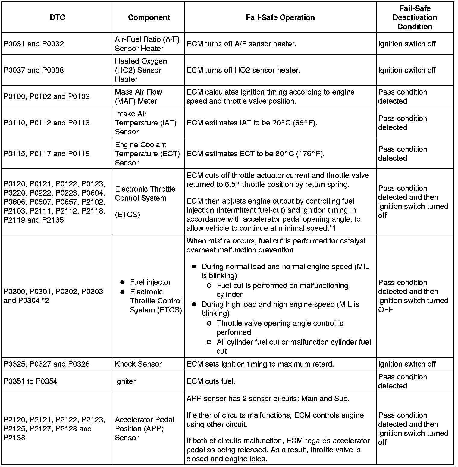 - *2: Misfire related fail-safe operations occur when catalyst overheat malfunctions occur.