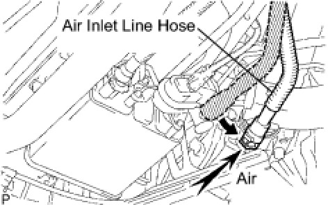(c) Reconnect the air inlet line hose to the charcoal canister.