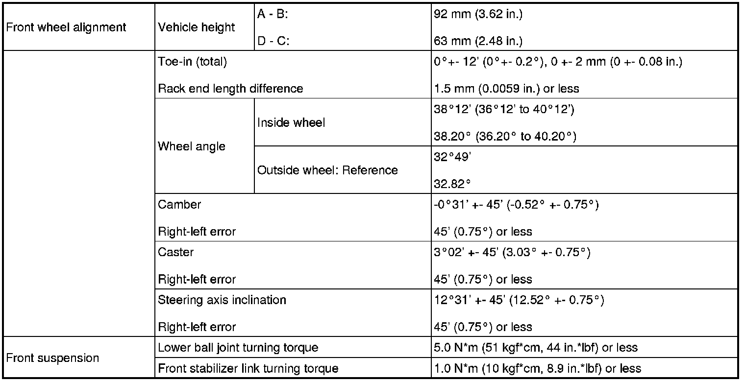 SERVICE SPECIFICATIONS: SUSPENSION: SERVICE DATA