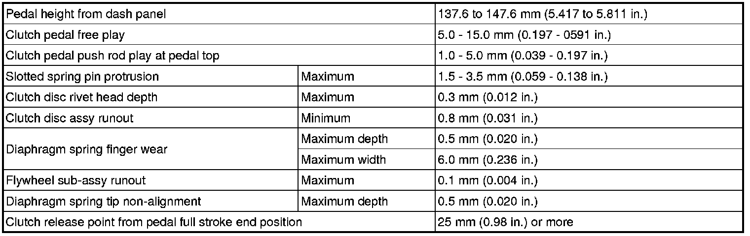 SERVICE SPECIFICATIONS: CLUTCH: SERVICE DATA
