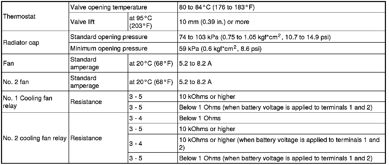 SERVICE SPECIFICATIONS: 2AZ-FE COOLING: SERVICE DATA