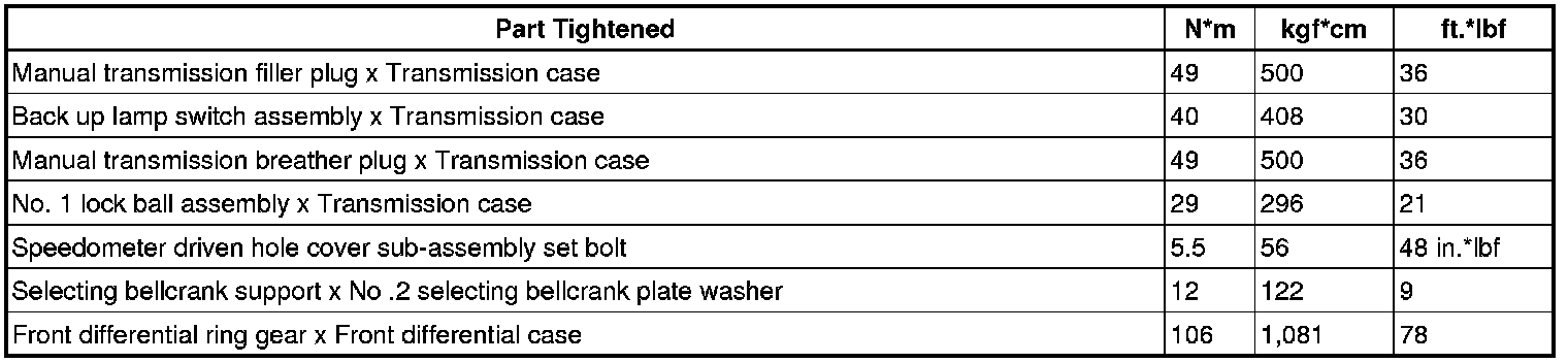 SERVICE SPECIFICATIONS: E350 MANUAL TRANSAXLE: TORQUE SPECIFICATIONS