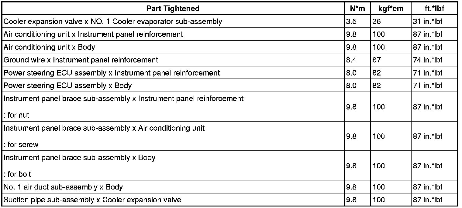 SERVICE SPECIFICATIONS: AIR CONDITIONING: TORQUE SPECIFICATIONS