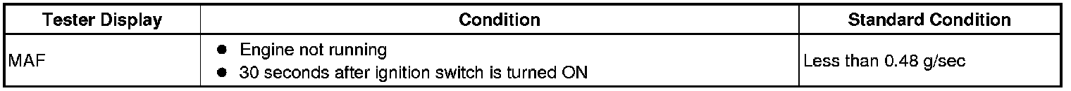 - Only replace the mass air flow meter when any foreign matter is adhering to the sensor and both MAF values in the Data List (with the engine stopped) are not within the normal operating range.