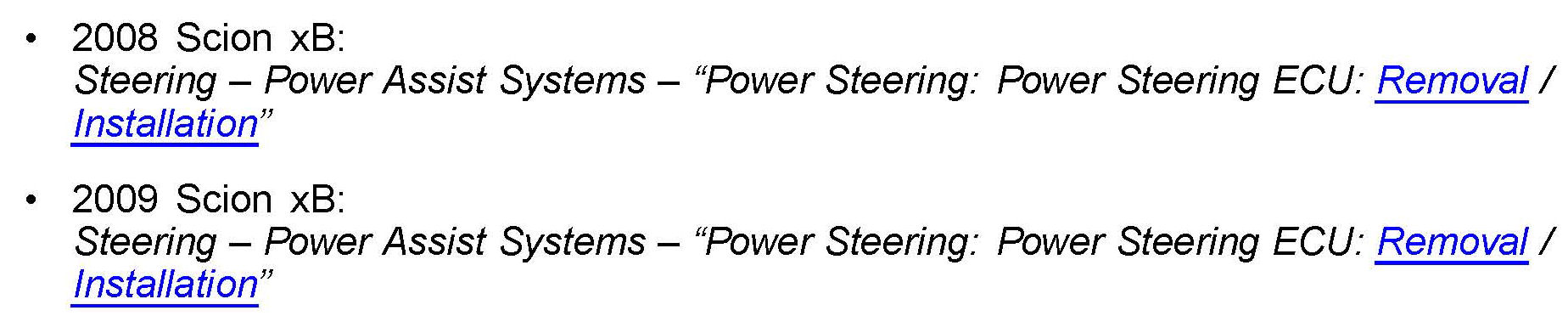 Refer to the Technical Information System (TIS) applicable model year Scion xB Repair Manual: