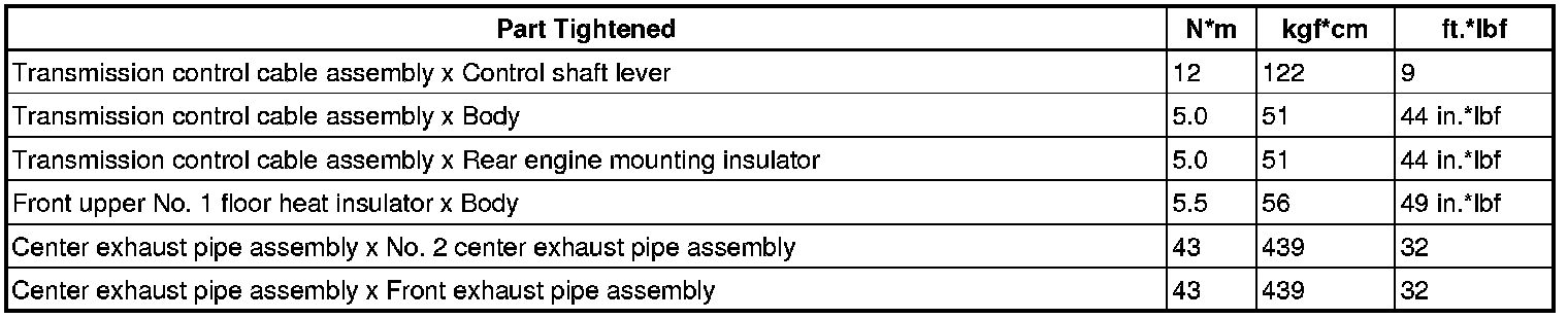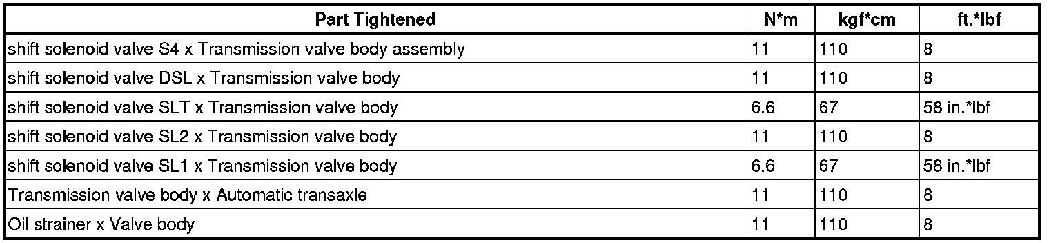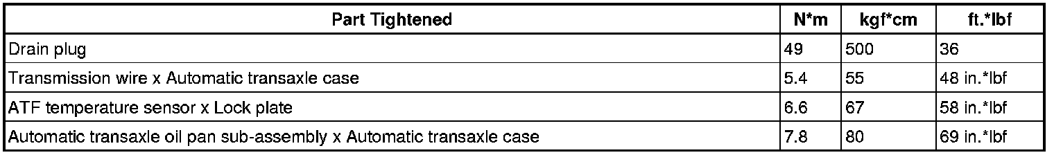 SERVICE SPECIFICATIONS: U241E AUTOMATIC TRANSAXLE: TORQUE SPECIFICATIONS