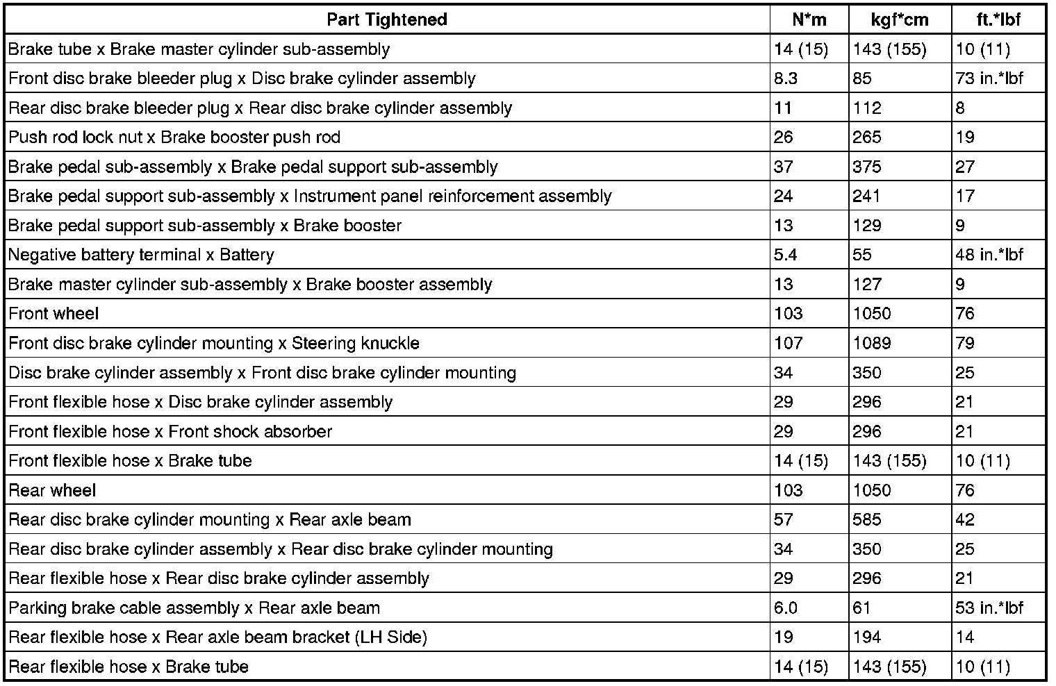 SERVICE SPECIFICATIONS: BRAKE: TORQUE SPECIFICATIONS
