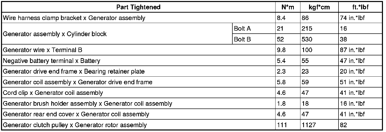 SERVICE SPECIFICATIONS: 2AZ-FE CHARGING: TORQUE SPECIFICATIONS
