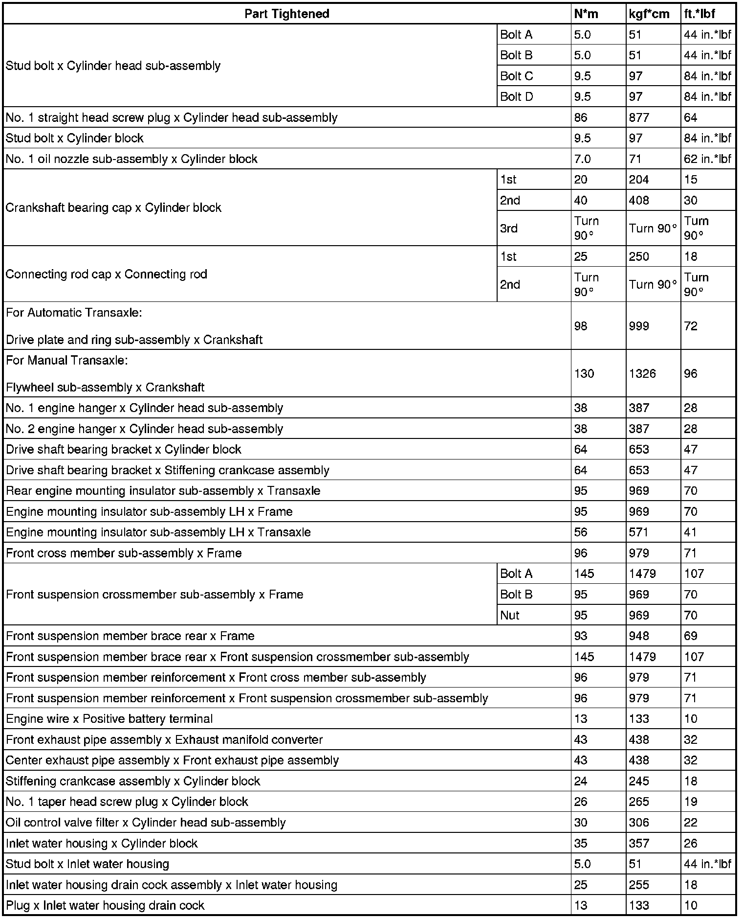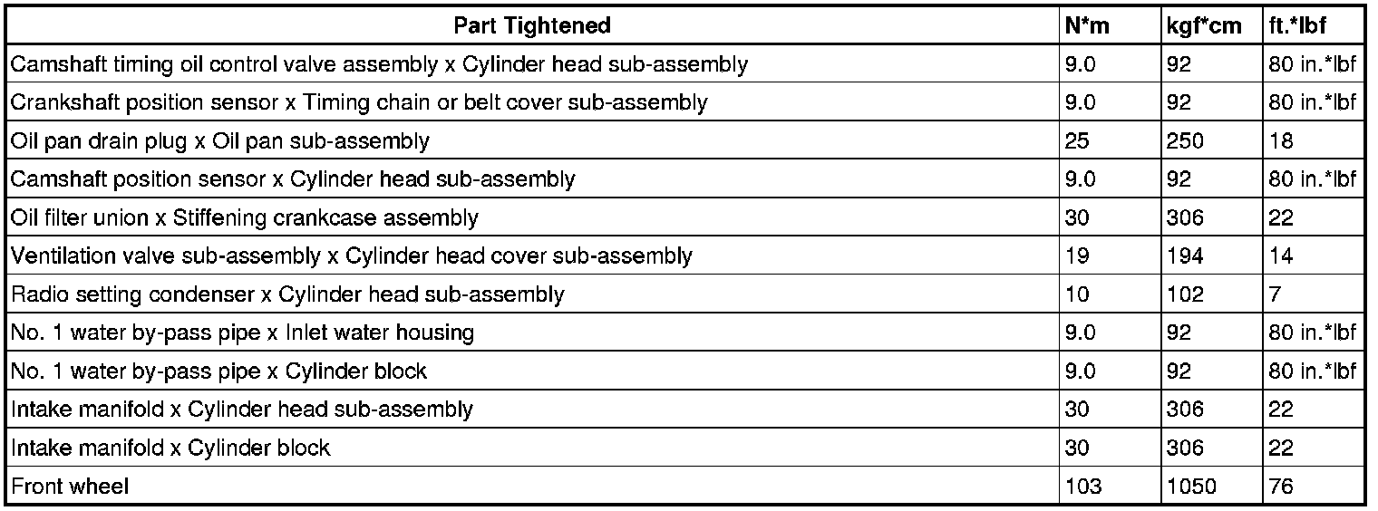 SERVICE SPECIFICATIONS: 2AZ-FE ENGINE MECHANICAL: TORQUE SPECIFICATIONS