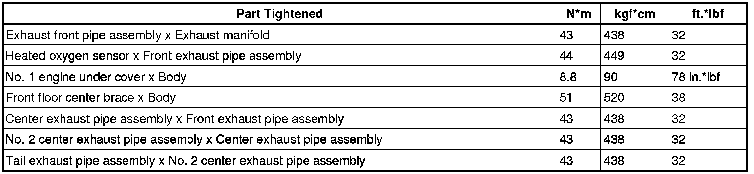 SERVICE SPECIFICATIONS: 2AZ-FE EXHAUST: TORQUE SPECIFICATIONS
