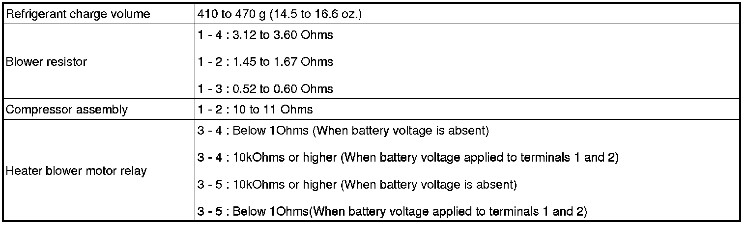 SERVICE SPECIFICATIONS: AIR CONDITIONING: SERVICE DATA