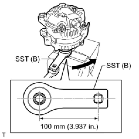 (f) Tighten the pulley by turning SST (B) in the direction shown in the illustration.