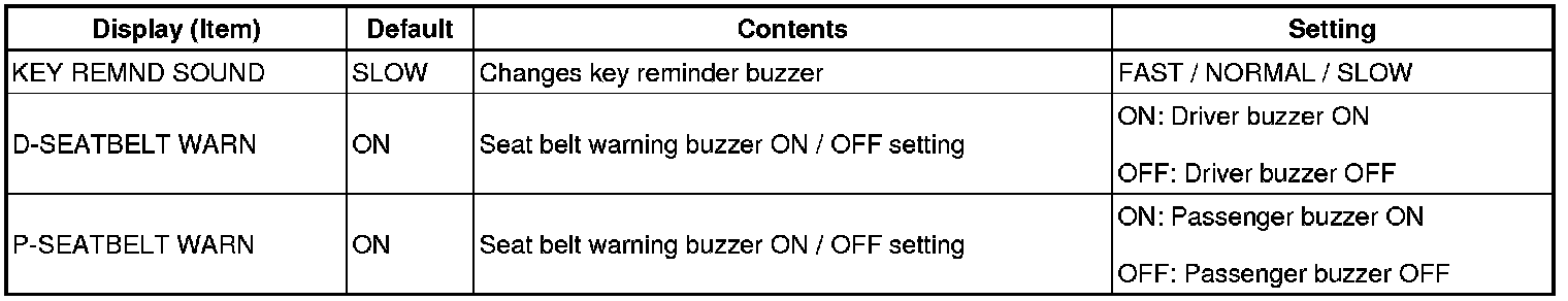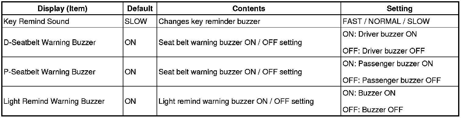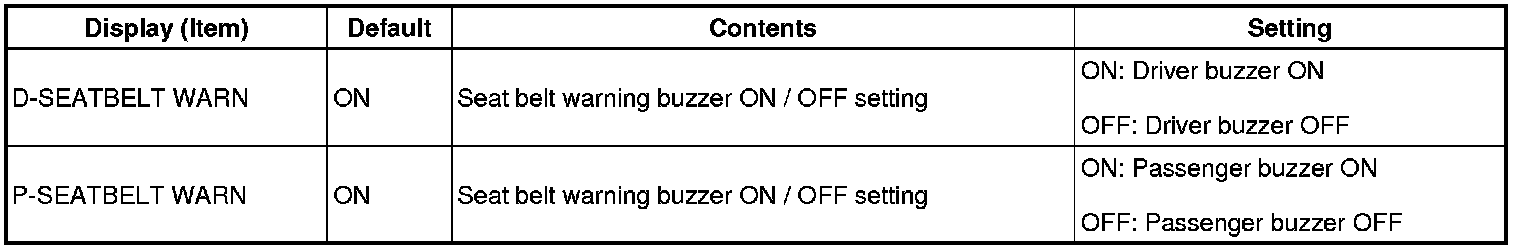 HINT: When the buzzer OFF setting is selected, the buzzer activation while the vehicle is being driven is cancelled. However, the buzzer activation when the ignition switch is turned to ON cannot be cancelled.