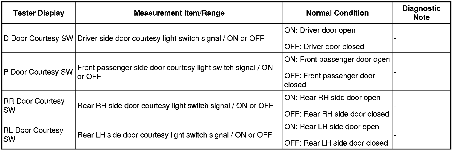 HINT: Using the Techstream to read the DATA LIST allows the values and states of switches, sensors, actuators and other items to be read without removing any parts. This non-intrusive inspection can be very useful because intermittent conditions or signals may be discovered before parts or wiring is disturbed. Reading the DATA LIST information early in troubleshooting is one way to save diagnostic time.