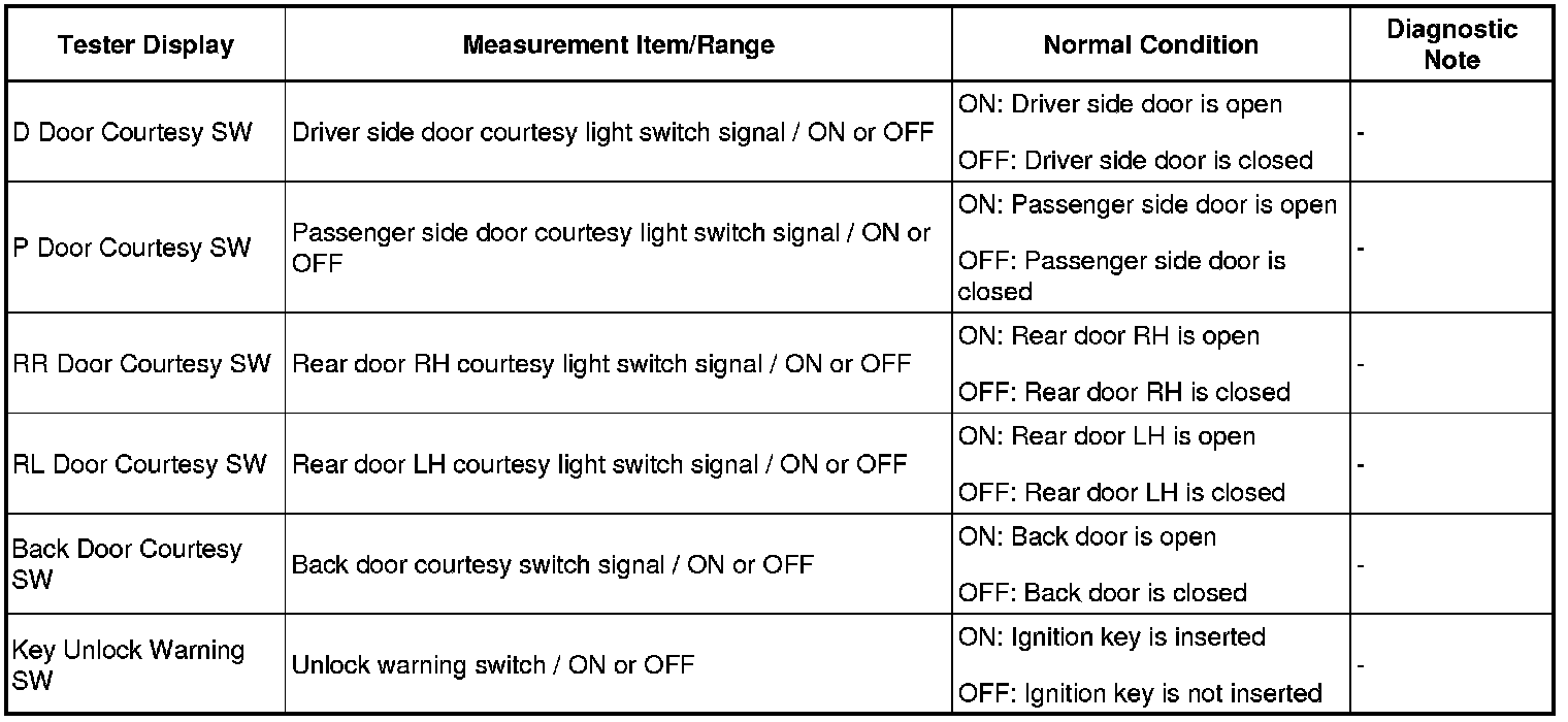 DOOR LOCK: WIRELESS DOOR LOCK CONTROL SYSTEM: DATA LIST / ACTIVE TEST