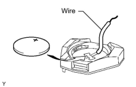 (a) Remove the battery from the door control transmitter module that does not operate. Attach a lead wire (0.6 mm (0.0236 in.) in diameter or less including wire sheath) with tape or equivalent to the negative terminal Testing and Inspection.