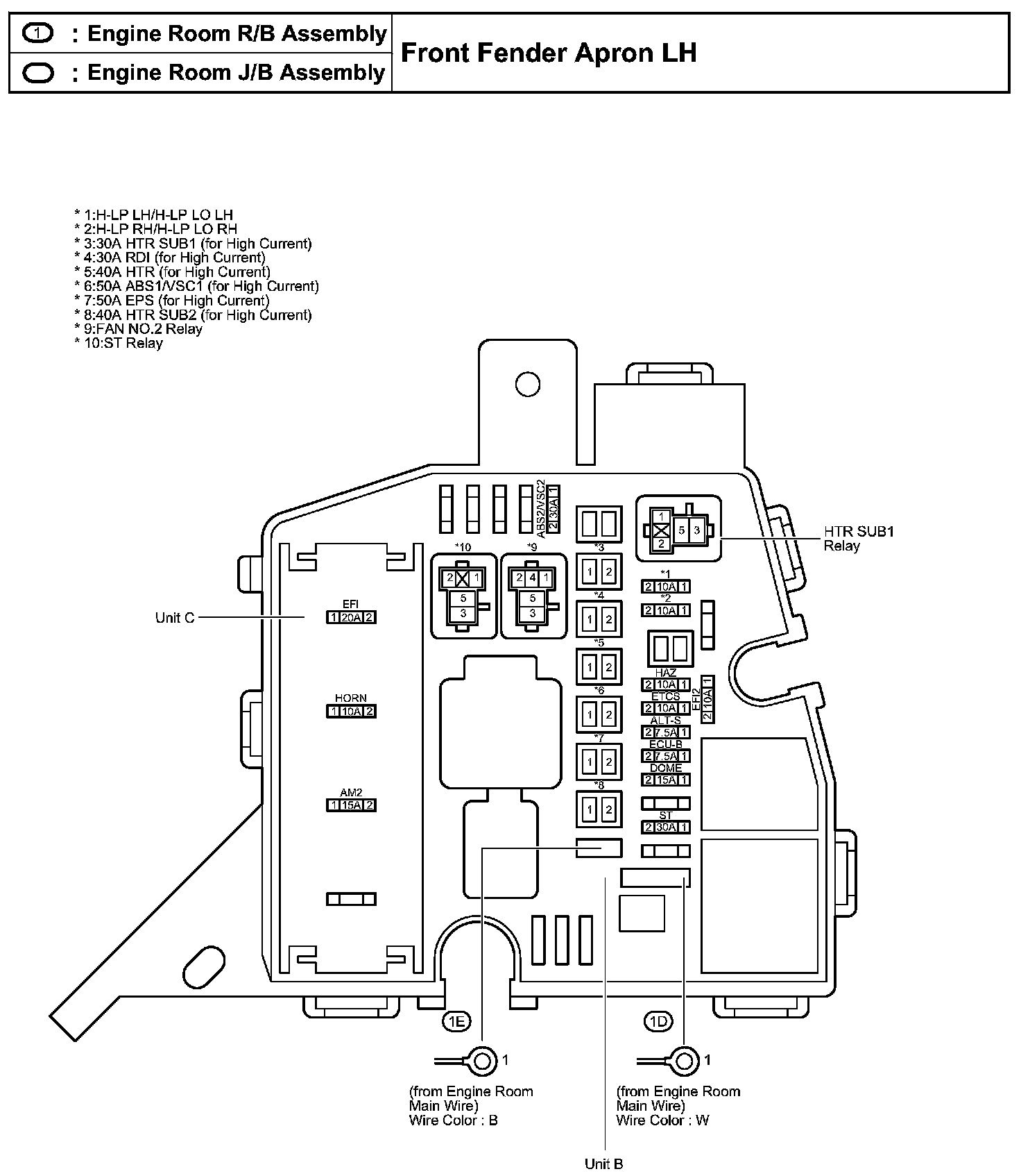 Engine Room R/B, J/B Assembly - Front Fender Apron LH:
