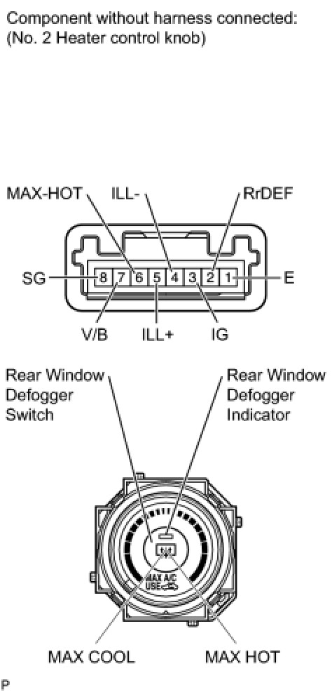 If the result is not as specified, replace the No. 2 heater control knob.