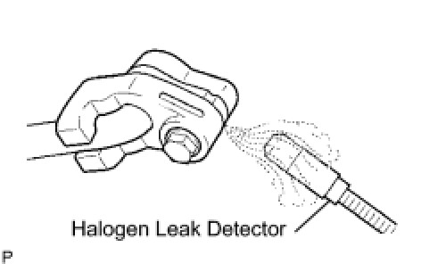 (c) Using the halogen leak detector, check the refrigerant line, especially at the connection points, for leakage.