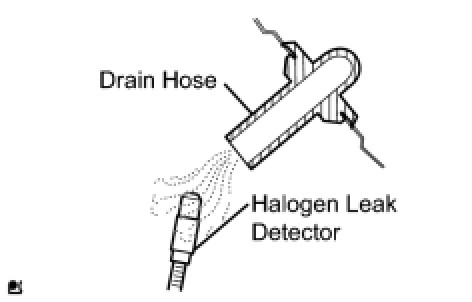 (d) Bring the halogen leak detector close to the drain hose before performing the test.