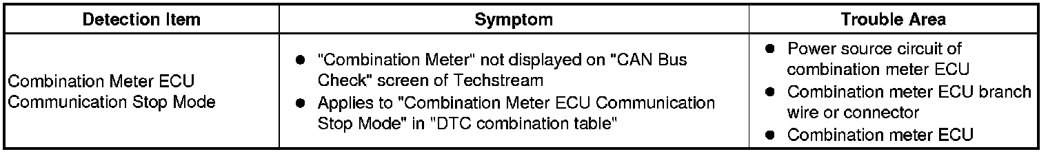 CAN COMMUNICATION: CAN COMMUNICATION SYSTEM: Combination Meter ECU Communication Stop Mode