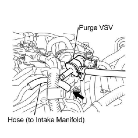 (a) Disconnect the hose (connected to the intake manifold) from the purge VSV.