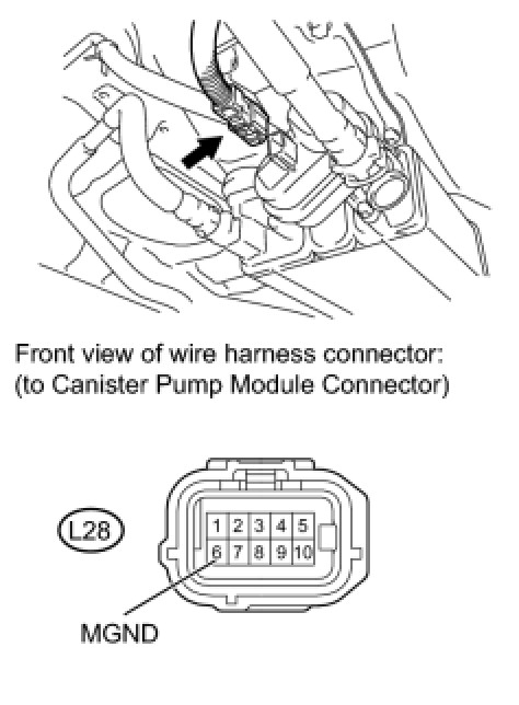 (c) Disconnect the canister pump module connector.