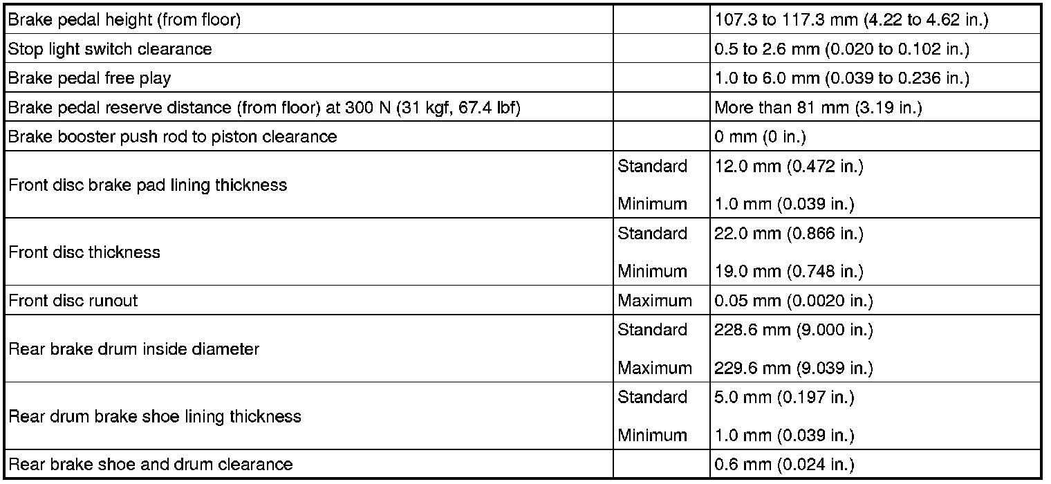 SERVICE SPECIFICATIONS: BRAKE: SERVICE DATA