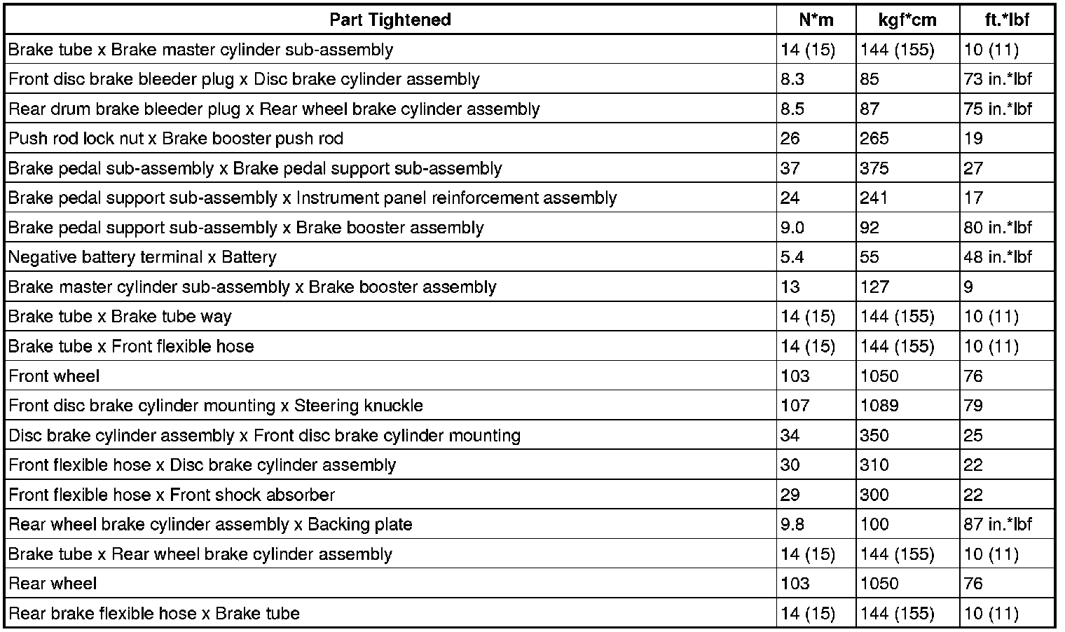 SERVICE SPECIFICATIONS: BRAKE: TORQUE SPECIFICATIONS