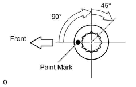 Mark the front of the cylinder head bolt with paint.Retighten the cylinder head bolts by additional 90° and one more additional 45° as shown in the illustration.