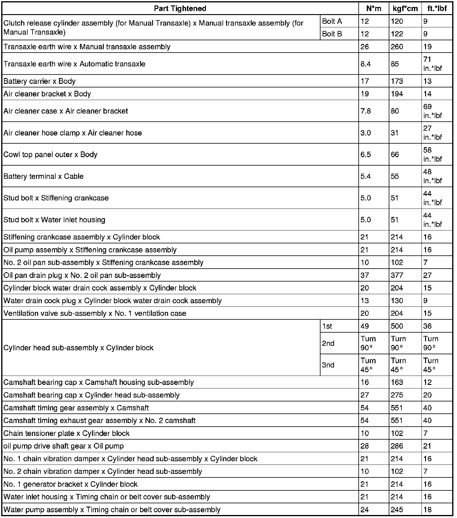 SERVICE SPECIFICATIONS: 2ZR-FE ENGINE MECHANICAL: TORQUE SPECIFICATIONS