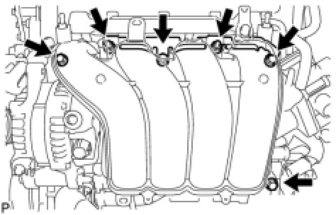 and manifold stay with the 4 bolts and 2 nuts in the order shown in the illustration, and then tighten them to the specified torque.