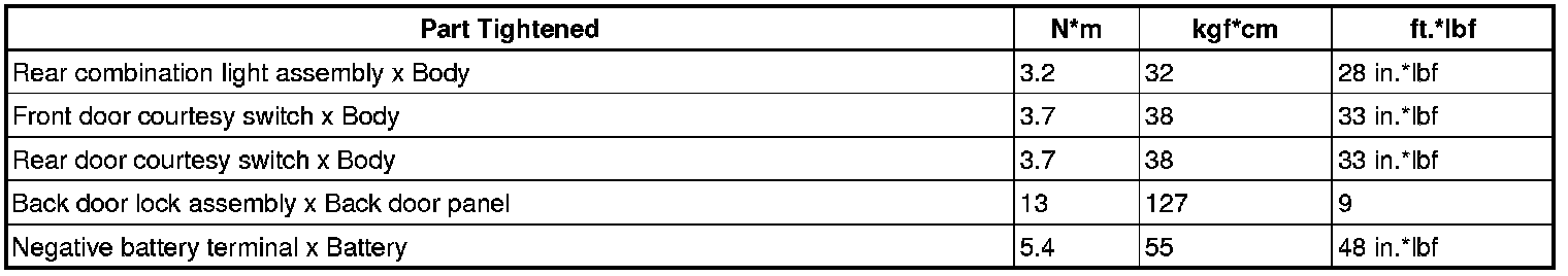 SERVICE SPECIFICATIONS: LIGHTING: TORQUE SPECIFICATIONS