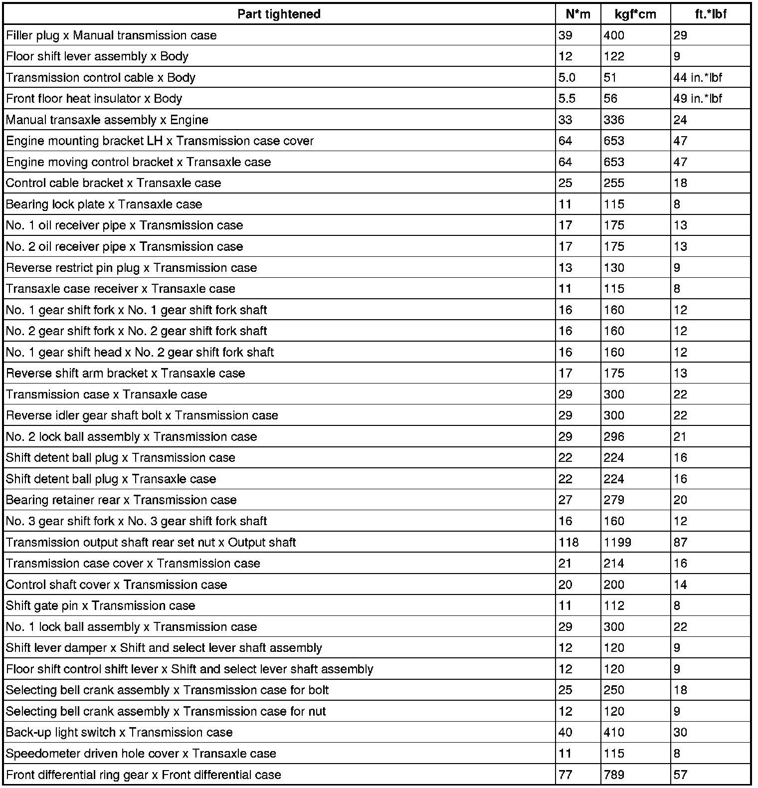 SERVICE SPECIFICATIONS: C50 MANUAL TRANSAXLE: TORQUE SPECIFICATIONS