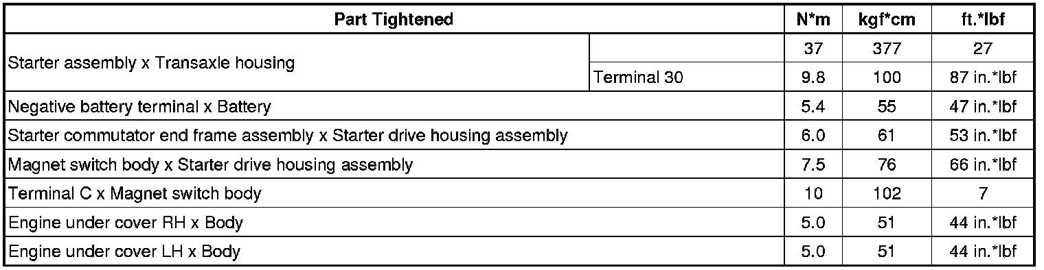 SERVICE SPECIFICATIONS: 2ZR-FE STARTING: TORQUE SPECIFICATIONS