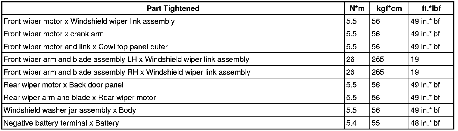 SERVICE SPECIFICATIONS: WIPER AND WASHER: TORQUE SPECIFICATIONS