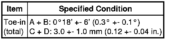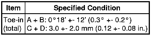 * If the toe-in is not within the specified range, inspect the suspension parts and replace them if necessary.