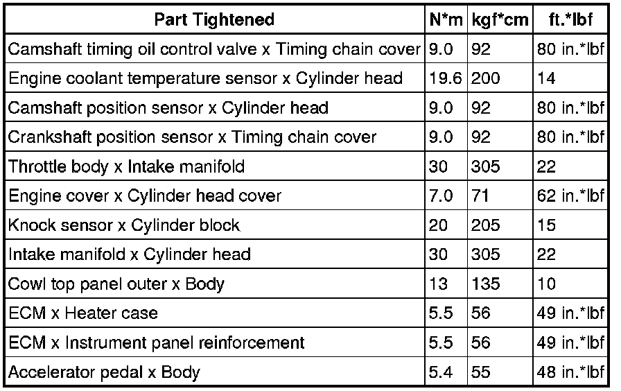 SERVICE SPECIFICATIONS: 2AZ-FE ENGINE CONTROL SYSTEM: TORQUE SPECIFICATIONS