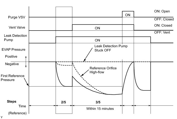 (b) Compare the EVAP pressure in step 3/5 and the second reference pressure (step 5/5).