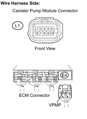 B -- CHECK HARNESS AND CONNECTOR (ECM - CANISTER PUMP MODULE)