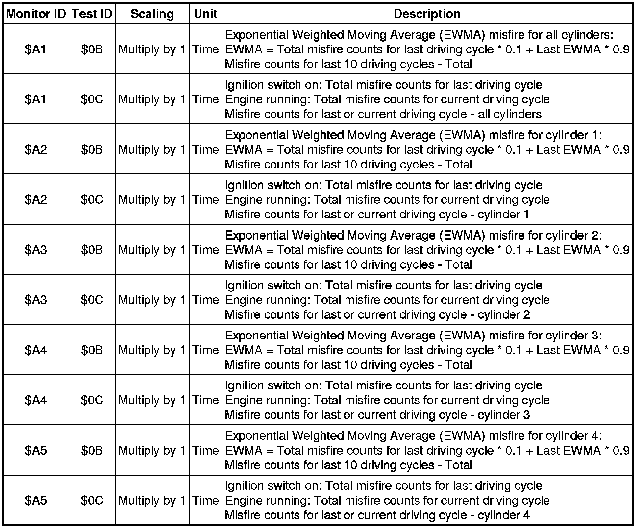 If you use a generic scan tool, multiply the test value by the scaling value listed below.