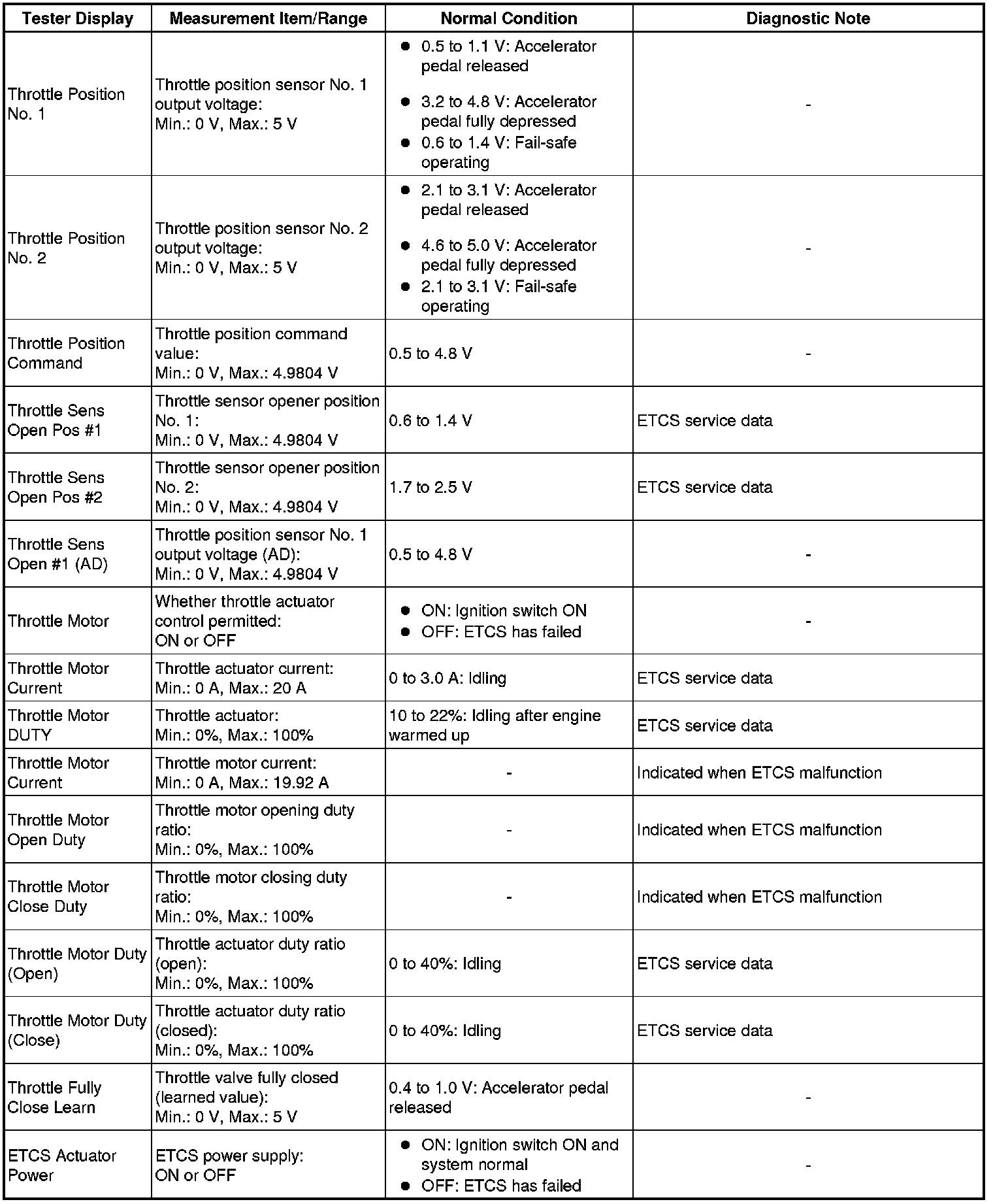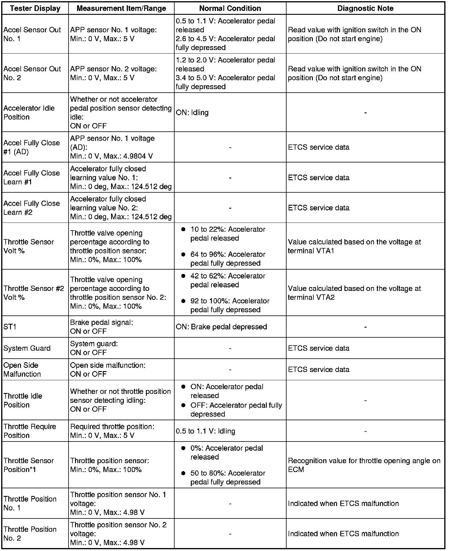 *1: Excluding throttle valve opening percentage due to Idle Speed Control (ISC).
