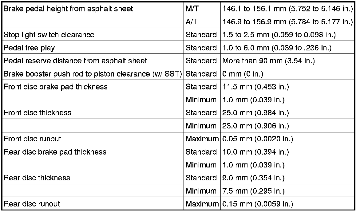 SERVICE SPECIFICATIONS: BRAKE: SERVICE DATA