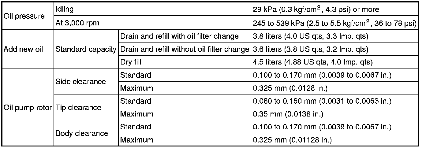 SERVICE SPECIFICATIONS: 2AZ-FE LUBRICATION: SERVICE DATA