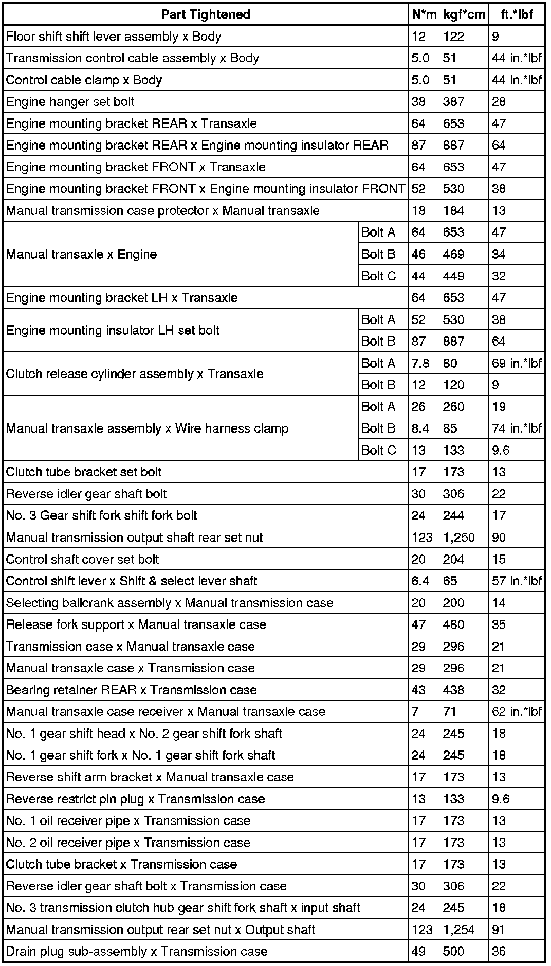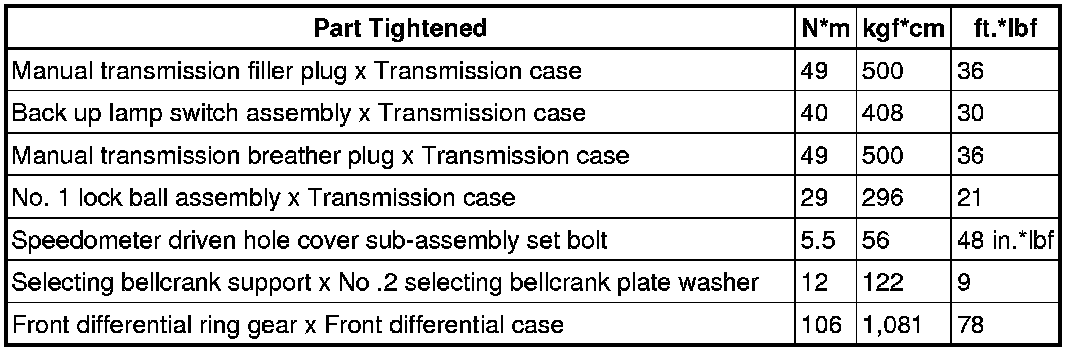 SERVICE SPECIFICATIONS: E350 MANUAL TRANSAXLE: TORQUE SPECIFICATIONS