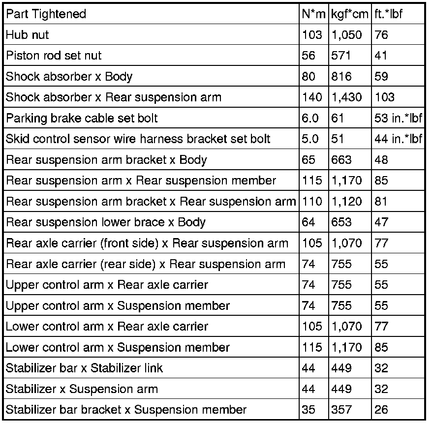 : TORQUE SPECIFICATIONS