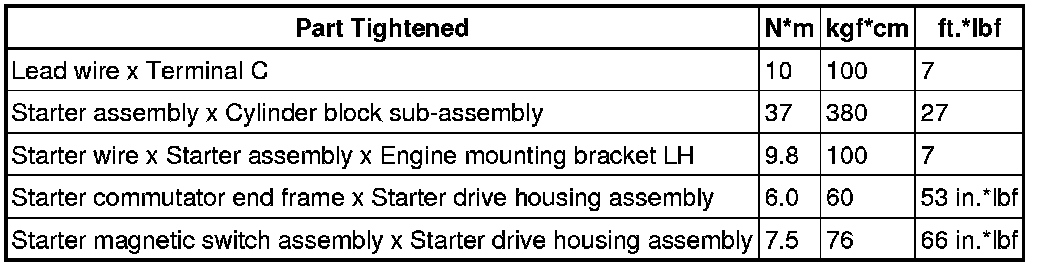 SERVICE SPECIFICATIONS: 2AZ-FE STARTING: TORQUE SPECIFICATIONS