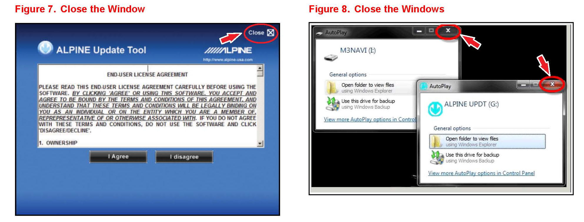8. Close ALL pop-up windows that appear on the PC after plugging in the USB cable before continuing.