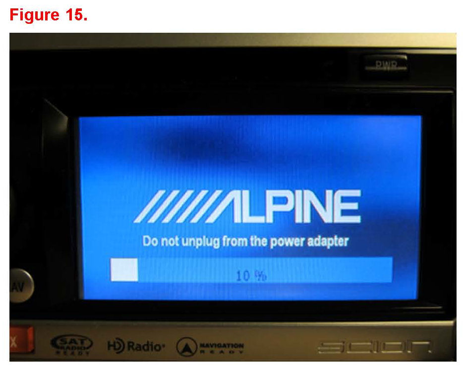 15. The system will show update process on the Radio display and then the system will reboot when the update is completed.